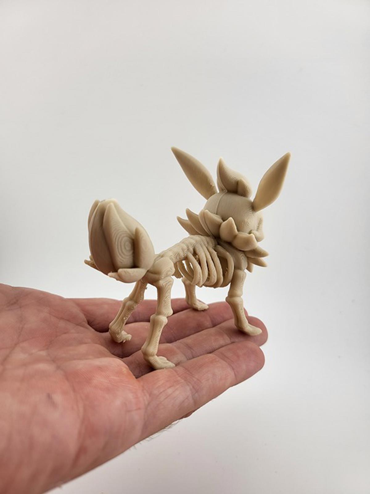 This 3D printed model showcases the skeletal remains of the popular Eeveelution. Even without its signature flames, the iconic fluffy collar and poofy tail are perfectly captured in this fossilized form, creating a unique and creepy-cute collectible. It's the perfect way to add a flicker of horror to your seasonal display or warm up your haunted house with its spooky charm.