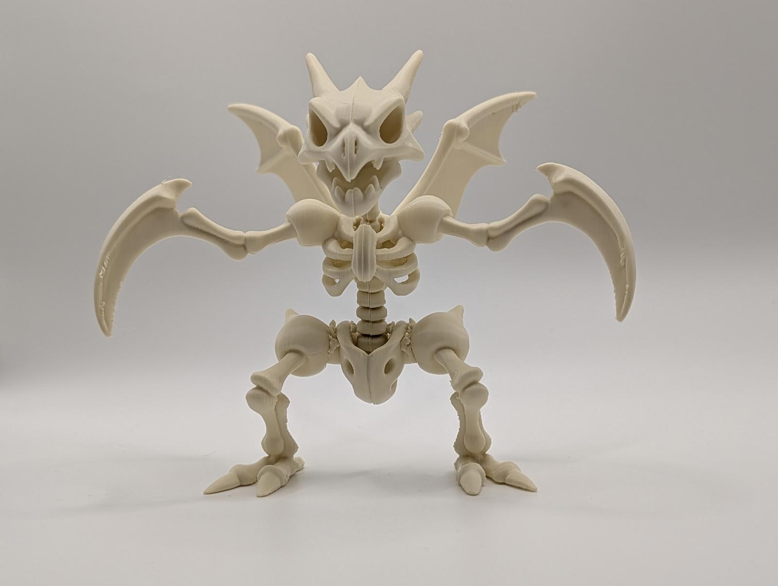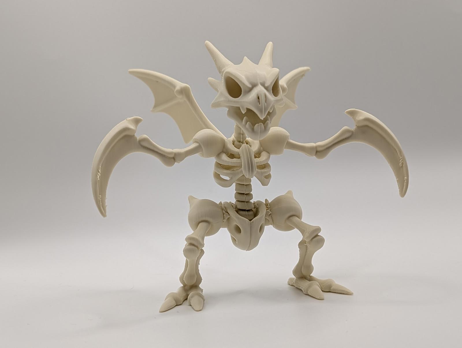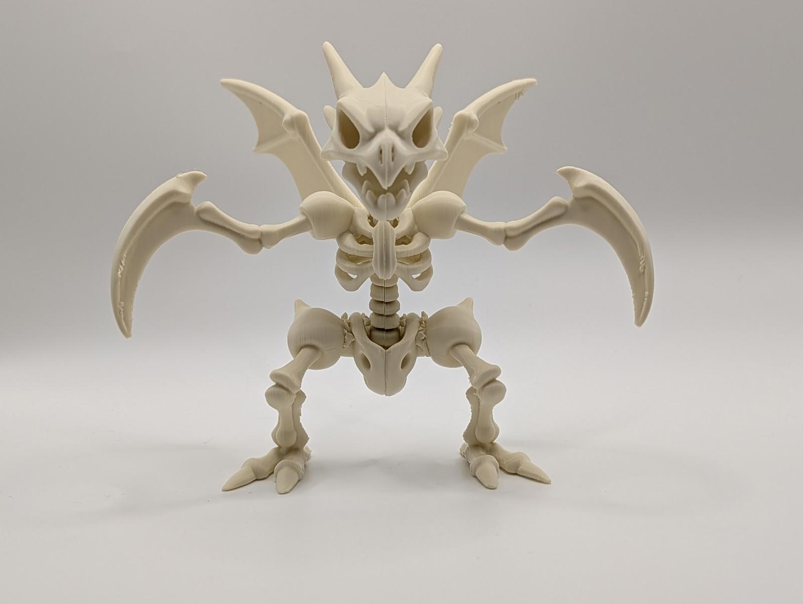 This 3D printed model captures the lightning-fast Bug Pokémon in chilling skeletal form. Its iconic, razor-sharp scythes and menacing insectoid frame are perfectly detailed, creating a truly fearsome fossil. It's the ultimate monster for your collection of Halloween horrors, ready to lurk in the shadows of your display with a unique slasher-movie vibe.